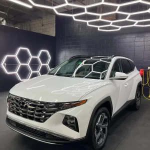 Dust & Clean interior surfaces, High-Pressure Air Crack & Crevice, Vacuum Carpet & Trunk, Interior & Exterior windows clean, Wheel clean & Tire Shine, Door jambs doors & trunk, Hand Car Wash Exterior. Orbital application of carnauba wax that provides three (3) months protection. (Air Freshener Optional)